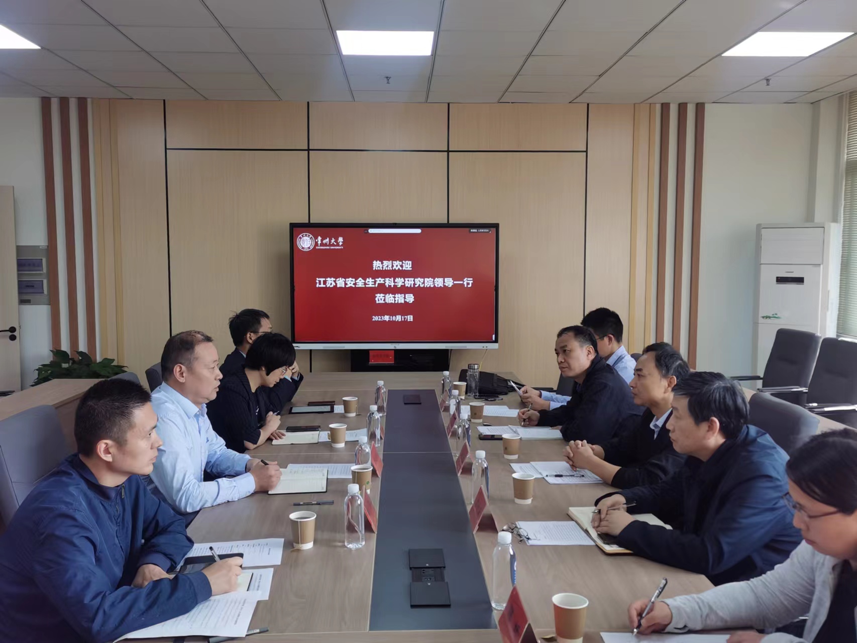 邢志祥经理对江苏省安全生产科学研究院的到访表示热烈欢迎,并就学院的发展历史、团队队伍、公司产品、科学研究、社会服务、人才培养等相关内容进行了介绍,希望双方加强交流与合作。
