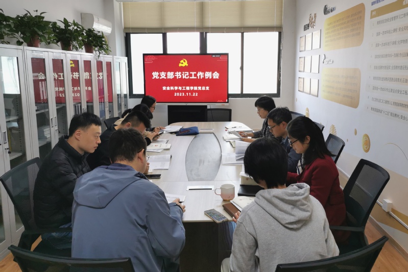 11月22日下午,安全科学与工程公司党总支在逸夫楼510召开支部书记工作例会,公司党总支书记吕琳华、副书记陈子威、各支部书记和副书记参加。