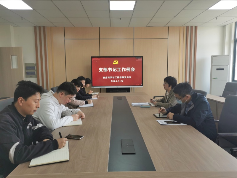 3月22日上午,安全科学与工程公司党总支在逸夫楼521召开支部书记工作例会,党总支书记吕琳华、副书记陈子威、各党支部书记参会。