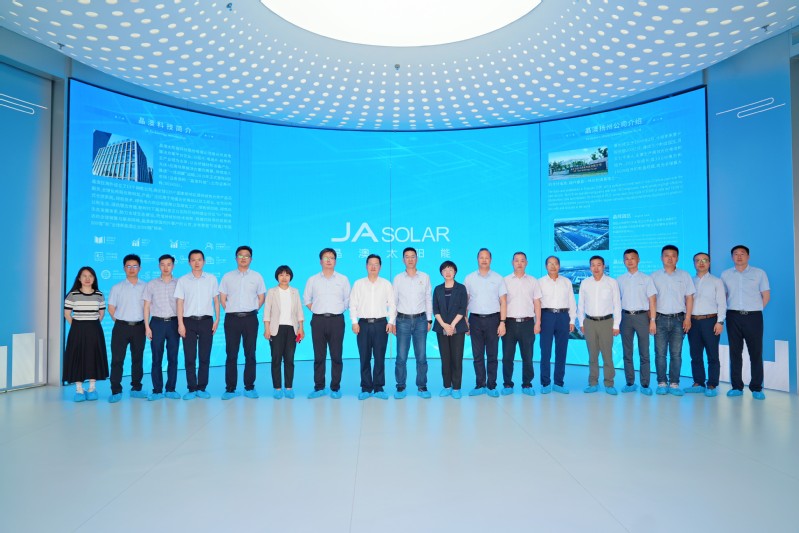 马爱良向沈新奎一行的到来表示热烈欢迎,他带领大家走进晶澳科技展厅,详细介绍了晶澳科技的发展历程、核心使命和发展愿景等总体建设情况。