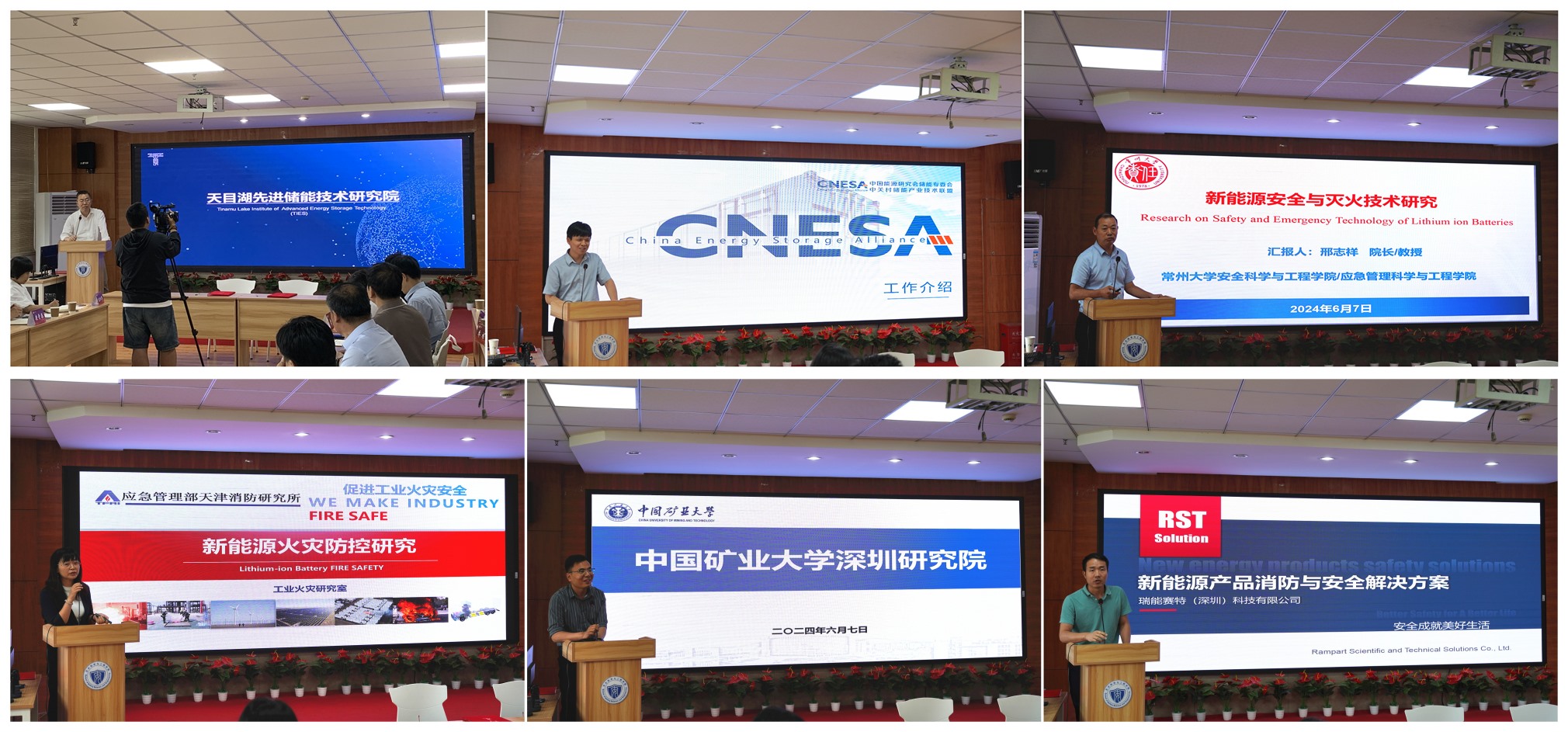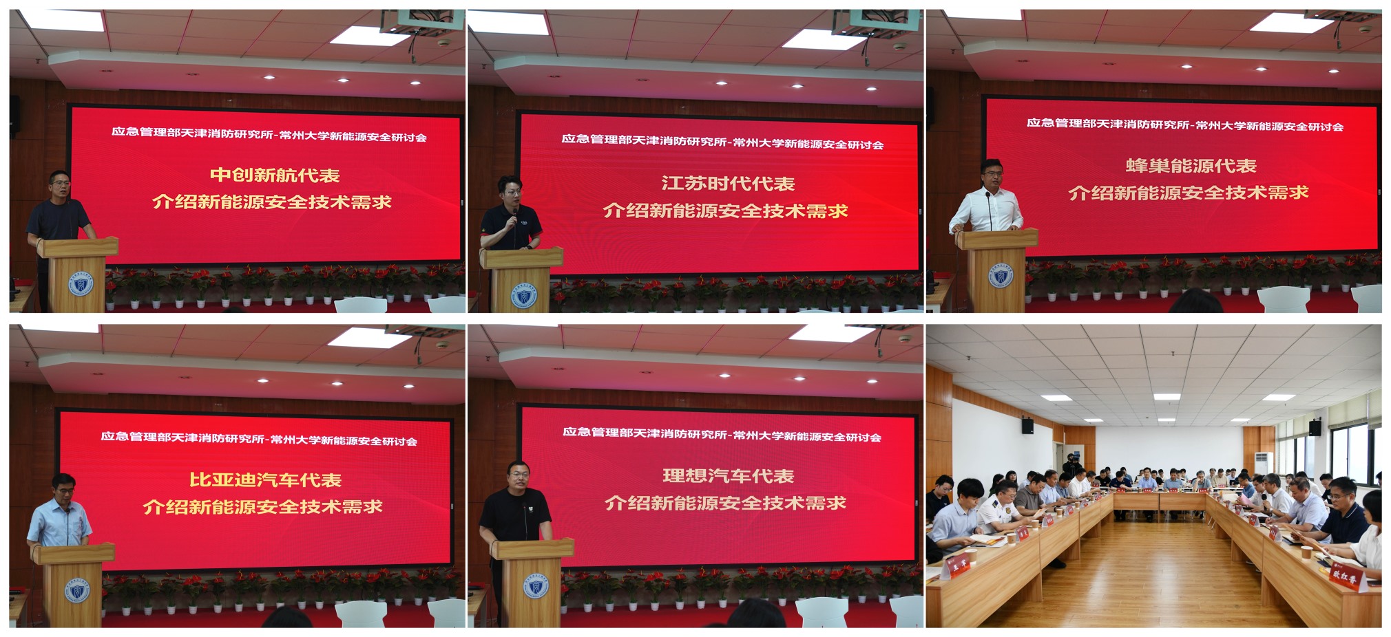 在研讨会环节,天目湖先进储能技术研究院、中关村储能产业技术联盟、betway88西汉姆联、天津消防研究所、中国矿业大学深圳研究院、瑞能赛特(深圳)科技有限公司等单位代表依次介绍了本单位在新能源安全领域的业务方向及研究情况。中创新航科技集团股份有限公司、江苏时代新能源科技有限公司、蜂巢能源科技股份有限公司、常州比亚迪汽车有限公司、理想汽车常州分公司等新能源企业代表依次介绍了新能源安全技术需求。最后,参会各方就新能源安全方面所面临的问题、挑战以及未来的合作发展方向展开广泛而深入的讨论交流。