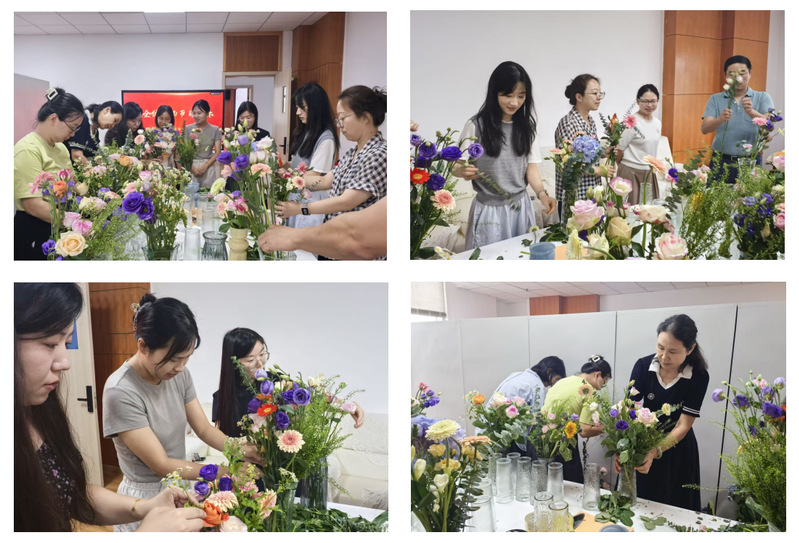 教职工们积极动手实践,将原本普通的花材变成了一个个独具匠心的花艺作品。老师们在花香环绕中,舒缓了工作压力,享受着插花带来的宁静与美好。大家在插花过程中不仅收获了技能,更体会到了艺术创作的乐趣。