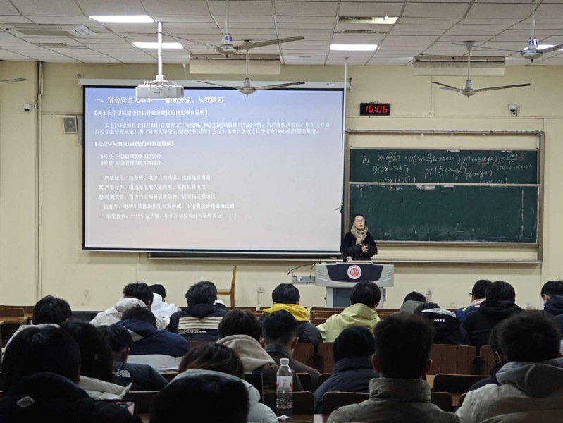 会议首先通报典型违规案例:此前有同学因在宿舍内吸烟引发火情,已依规受到学校警告处分。会议强调,宿舍安全是校园安全体系的重要基石,全体员工必须严格恪守宿舍管理规定,严禁使用热得快、电火锅等违禁电器,严禁电动车电池入寝、私拉乱接电线,严禁在宿舍区域吸烟;消防安全事关全体师生生命财产安全,任何漠视消防安全的行为,除将依规受到校纪处分外,情节严重的还需承担相应法律责任。全体员工需以案为鉴,时刻绷紧安全之弦,自觉履行校园安全责任,共同维护校园安全稳定大局。