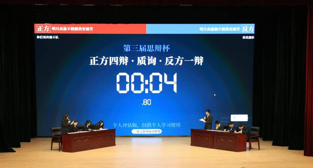 经过初赛、复赛的多轮角逐,消防252班代表队与安全252班代表队晋级决赛。本次决赛辩题为“明月高悬独不照我更痛苦/明月高悬不独照我更痛苦”,安全252班持正方立场,消防252班持反方立场。