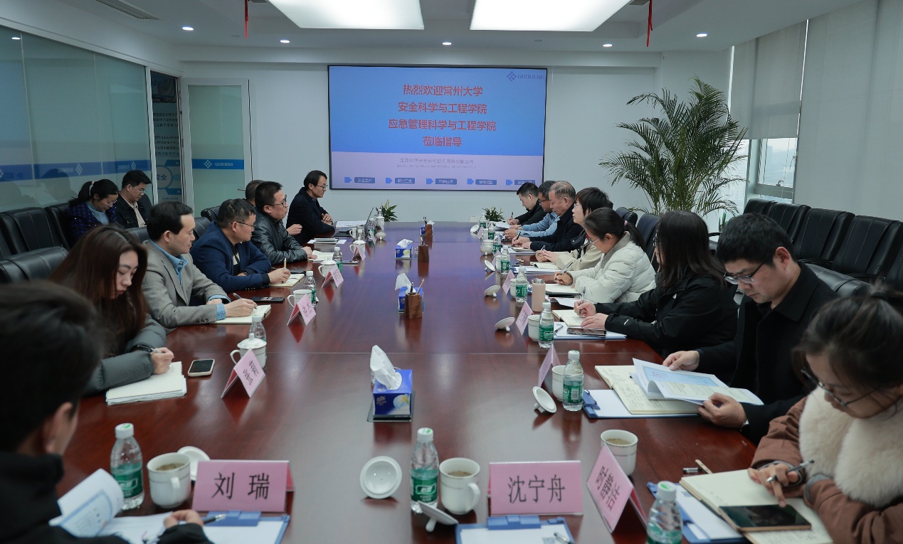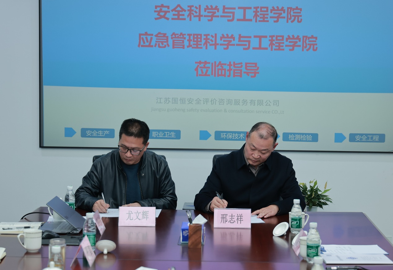 吕琳华、邢志祥代表学院向江苏国恒安全大力支持学校发展表示诚挚感谢,并详细介绍了学院的团队建设、团队力量、科研优势、人才培养模式及毕业生就业情况。邢志祥重点推介了学院在安全科学与工程领域的学科特色与科研成果,强调学院始终以服务行业需求为导向,致力于培养政治素质过硬、专业能力突出、实践能力较强的应用型安全人才,与企业的发展需求高度契合。